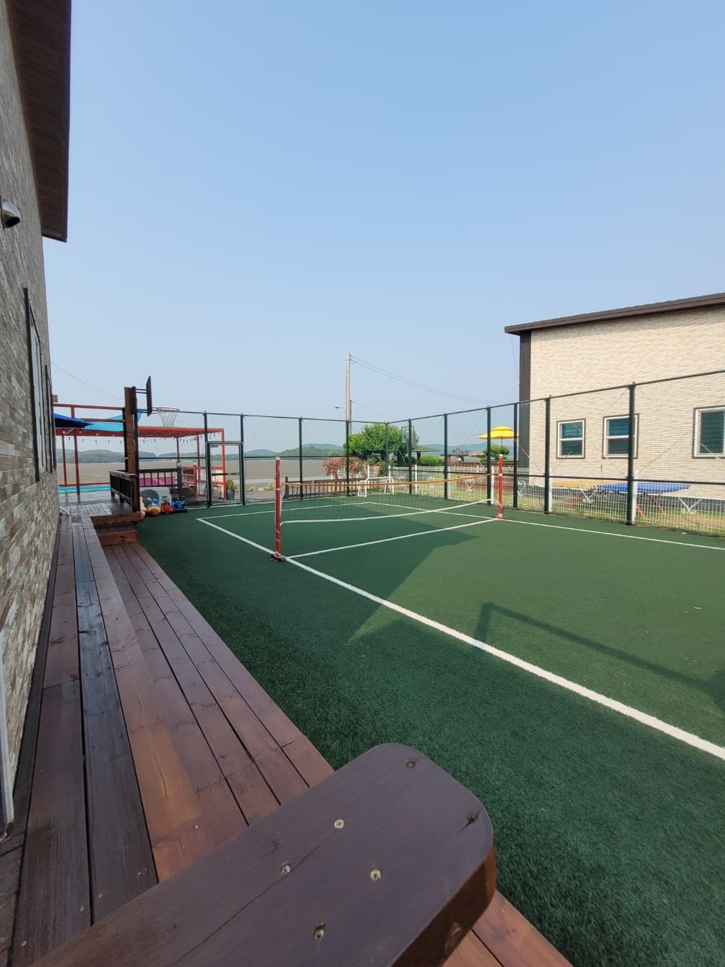 족구장 옆에 벤치를 설치했습니다!